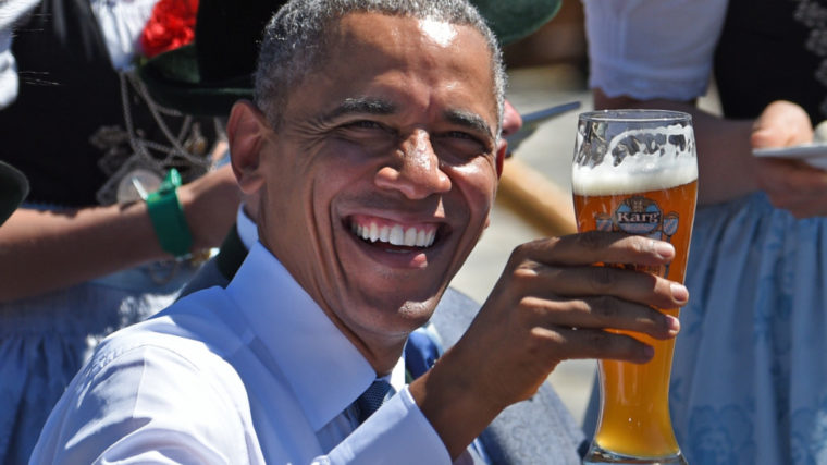 Das Wetter in Krün sei am Sonntag so schön – «wir sollten Bier trinken». Das müssten sie aber mit den Sicherheitsbeamten klären. Nach der kurzen Rede setzte sich Obama mit der deutschen Kanzlerin Angela Merkel an einen Biertisch, es gab eine zünftige Brotzeit – und Bier.