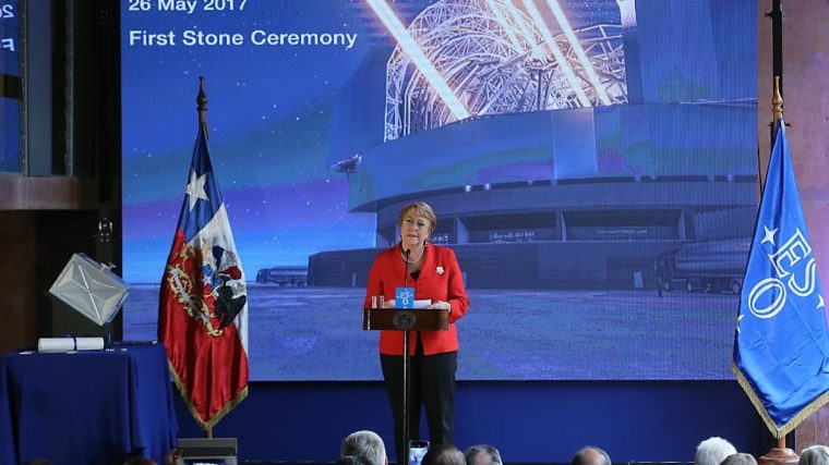 Die chilenische Präsidentin Michelle Bachelet wollte bei der Zeremonie auf dem Wüstenplateau in 3000 Metern Höhe eigentlich symbolisch den Grundstein für den Bau legen. Starke Winde hinderten sie jedoch daran.