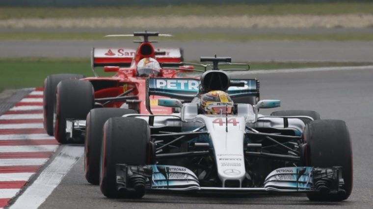 Schanghai. Grand Prix von China. Startaufstellung: 1 Lewis Hamilton (GBR), Mercedes, 1:31,678 (214,049 km/h). 2 Sebastian Vettel (GER), Ferrari, 0,186 Sekunden zurück. 3 Valtteri Bottas (FIN), Mercedes, 0,187. 4 Kimi Räikkönen (FIN), Ferrari, 0,462. 5 Daniel Ricciardo (AUS), Red Bull-Renault, 1,355. 6 Felipe Massa (BRA), Williams-Mercedes, 1,829. 7 Nico Hülkenberg (GER), Renault, 1,902. 8 Sergio Perez (MEX), Force India-Mercedes, 2,028. 9 Daniil Kwjat (RUS), Toro Rosso-Renault, 2,041. 10 Lance Stroll (CAN), Williams-Mercedes, 2,542. – Nach dem zweiten Teil des Qualifyings ausgeschieden: 11 Carlos Sainz (ESP), Toro Rosso-Renault. 12 Kevin Magnussen (DEN), Haas-Ferrari. 13 Fernando Alonso (ESP), McLaren-Honda. 14 Marcus Ericsson (SWE), Sauber-Ferrari. 15 Antonio Giovinazzi (ITA), Sauber-Ferrari. – Nach dem ersten Teil des Qualifyings ausgeschieden: 16 Stoffel Vandoorne (BEL), McLaren-Honda. 17 Max Verstappen (NED), Red Bull-Renault. 18 Esteban Ocon (FRA), Force India-Mercedes. 19* Romain Grosjean (FRA/SUI), Haas-Ferrari. 20* Jolyon Palmer (GBR), Renault. – 20 Fahrer im Qualifying. – * = Rückversetzung um 5 Plätze (nach Unfall von Giovinazzi zu schnell unterwegs / Missachtung gelber Flaggen).