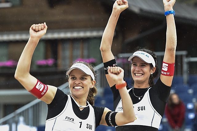 Joana Heidrich/Nadine Zumkehr feiern am Grand Slam in Gstaad einen «grossen» Sieg. Am Heimturnier bezwingen die Schweizerinnen die Weltnummern 1 Kerri Walsh/April Ross und stehen im Viertelfinal.