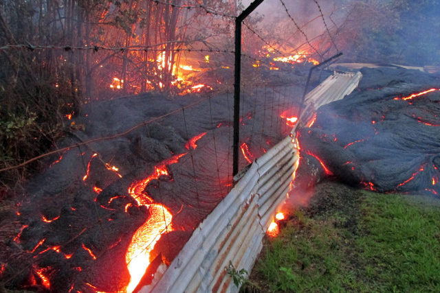 Die über 1000 Grad heisse Lava aus dem Vulkan Kilauea, die den Ort Pahoa bedroht, ist seit Ende Juni auf dem Vormarsch. Der Strom hat mehr als 20 Kilometer zurückgelegt. Viele Anwohner haben die Gemeinde verlassen.