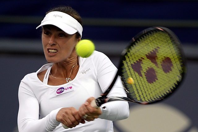 Martina Hingis muss bei ihrem zweiten Auftritt in Carlsbad als Verliererin vom Platz. Mit Daniela Hantuchova verliert sie gegen Raquel Kops-Jones und Abigail Spears 3:10 im Master-Tiebreak.
