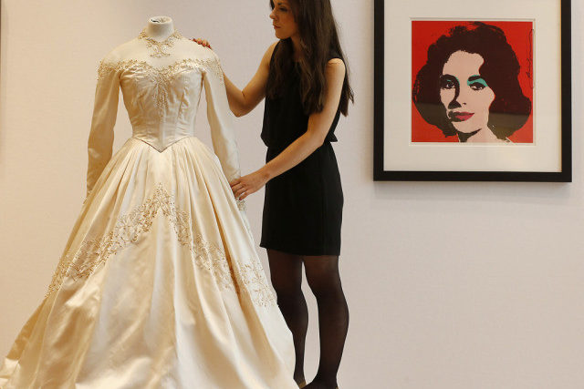 Das Hochzeitskleid, das Elizabeth Taylor im Jahre 1950 bei ihrer Trauung mit dem Hotelier Conrad Hilton trug, ist am Mittwoch in London für 121′ 875 Pfund (rund 176’000 Franken) versteigert worden.