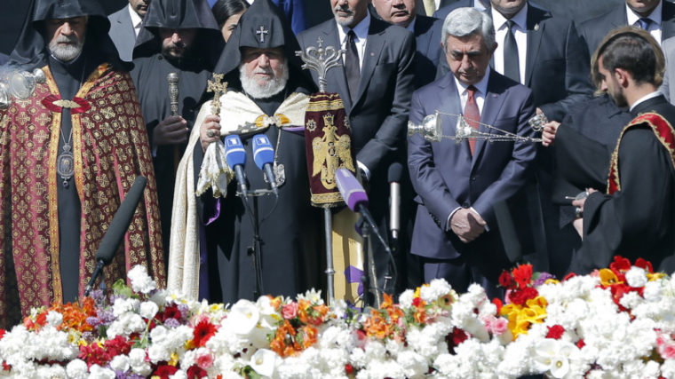 Mit der Feier werde «der Opfer des Völkermords an den Armeniern» gedacht, erklärte Armeniens Präsident Sarkissjan. Er beklagte, die «Politik des Leugnens» der Türkei habe sich bis heute nicht geändert – «ebenso wenig wir ihre feindliche Haltung gegenüber allem, was armenisch ist».