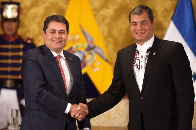 Nach dem Staatsstreich gegen Honduras‘ linksbürgerlichen Staatspräsidenten Manuel Zelaya im Juni 2009 hatte sich Correa geweigert, dessen Nachfolger Porfirio Lobo anzuerkennen. Lobo war Anfang 2014 nach vier Jahren im Amt aus dem Amt schied.