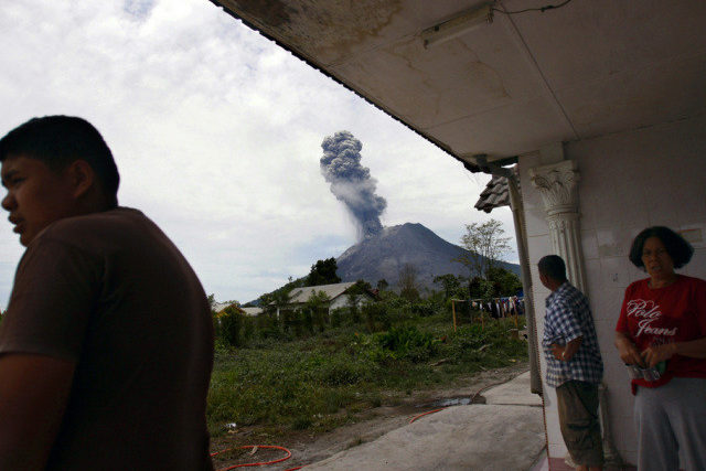 Ein Vulkanausbruch auf der indonesischen Insel Sumatra hat mindestens 1500 Menschen in die Flucht getrieben. Über dem Krater des Mount Sinabung steige eine rund sieben Kilometer hohe Aschewolke auf, teilte der Katastrophenschutz am Sonntag mit.