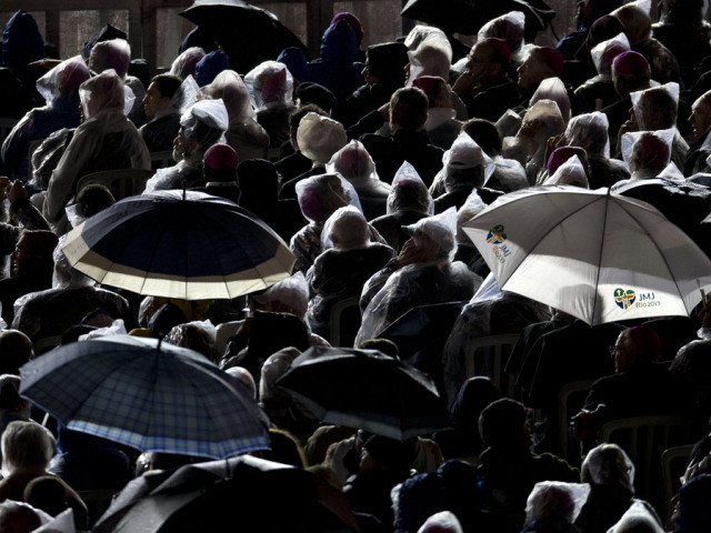 Trotz regnerischen Wetters und kühler Temperaturen waren die Jugendlichen singend und mit Fahnen ihrer Heimatländer an die Copacabana geströmt, wo der Papst auf einer riesigen Bühne das erste Mal seit seinem Eintreffen in Rio am Montag offiziell zu den Weltjugendtags-Pilgern sprach.