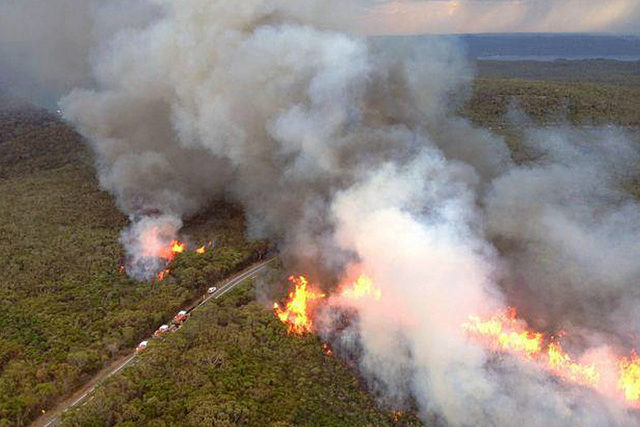 Rund 200 Kilometer östlich von Melbourne war die kleine Ortschaft Licola durch Flammenwände von der Aussenwelt abgeschnitten. Zehn Einwohner harrten dort aus. In den Nachbarorten Seanton und Heyfield brannten fünf Häuser nieder.