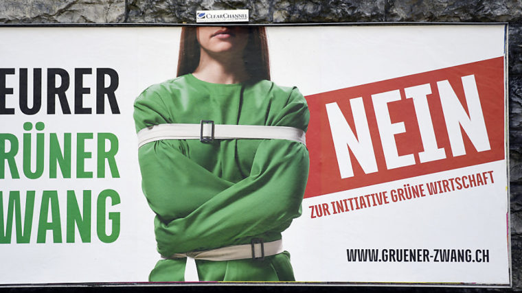 Unter anderem mit einer «giftgrünen Steuerschlange» und einer grünen Zwangsjacke waren SVP, CVP, FDP und BDP und Wirtschaftsverbände gegen die Initiative angetreten. Sie warnten vor einem Zwang zum Verzicht, etwa auf warme Duschen, Cervelats oder Flugreisen. Die Wirtschaft werde Schaden leiden, gaben sie zu bedenken.