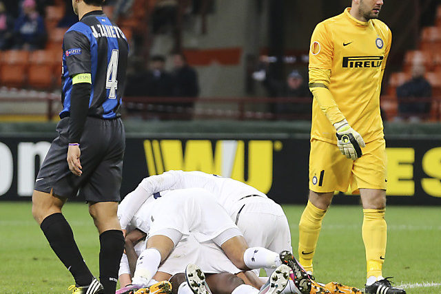 Tottenham taumelte gegen Inter, das in der Serie A seit Wochen kaum ein Bein vors andere bringt, am Abgrund. Sekunden vor Ende der Nachspielzeit stand Esteban Cambiasso alleine vor Tottenhams Keeper Brad Friedel, verfehlte das Tor und die Qualifikation für die Viertelfinals jedoch um wenige Zentimeter.