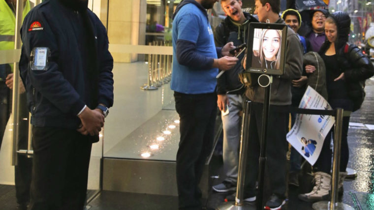 Die 22-Jährige montierte den Tabletcomputer auf ein fahrbares Gestell und postierte ihn 27 Stunden vor dem Verkaufsstart in der Warteschlange. Der ferngesteuerte Roboter rückte mit den Wartenden vor, bis er am Freitag als einer der ersten «Kunden» die neuen iPhone-Modelle 6s und 6s Plus erwarb.