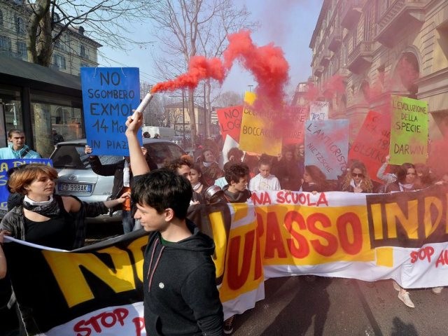 Studentendemonstrationen halfen nichts: Italiens Regierung sagt Ja zu einer umfangreichen Schulreform. Die Studenten kritisierten, die Regierung wolle damit dem öffentlichen Schulsystem Ressourcen zugunsten von Privatschulen entziehen.