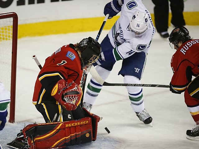 Goalie Jonas Hiller feiert mit den Calgary Flames einen 4:2-Heimsieg über die Vancouver Canucks. Der Appenzeller führt damit im Schweizer Duell in den Playoff-Achtelfinals der NHL mit 2:1.