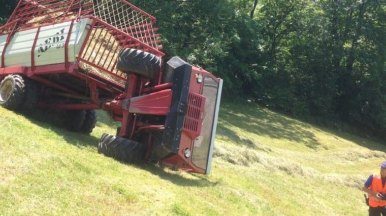 Beim Heuen in einem steilen Gelände in Oberägeri ZG ist am Donnerstagnachmittag der vordere Teil eines selbstfahrenden Ladewagens auf die Seite gekippt. Der Fahrer fiel aus der Kabine und verletzte sich mittelschwer.