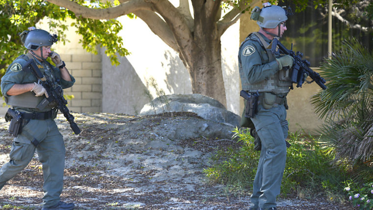 Eine Frau in Palm Springs hatte demnach am Samstagmittag den Notruf gewählt und angegeben, ihr Sohn bereite Schwierigkeiten. Als die Polizisten eintrafen, habe ein Mann hinter der geschlossenen Haustür auf sie gefeuert und die beiden Polizisten – eine 27-jährige Frau und einen 63-jährigen Mann – tödlich getroffen.