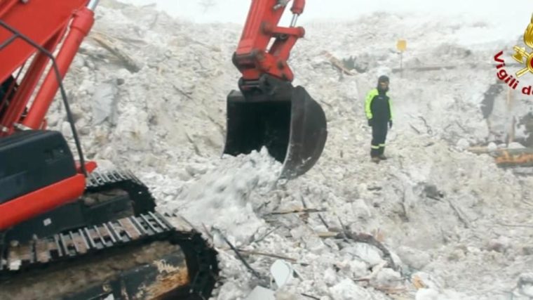 Nach schweren Schneefällen in Mittelitalien war die Region vergangene Woche von einer Reihe von Erdbeben erschüttert worden. Diese hatten die Lawine ausgelöst, welche das Hotel am letzten Mittwoch verschüttete. Elf Menschen überlebten das Unglück, neun davon konnten noch mehr als 40 Stunden später lebend geborgen werden.