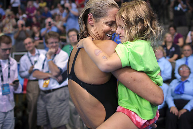 Die Mutter einer sechsjährigen Tochter wurde in ihrem letzten Rennen über 50 m Crawl nur Vierte.