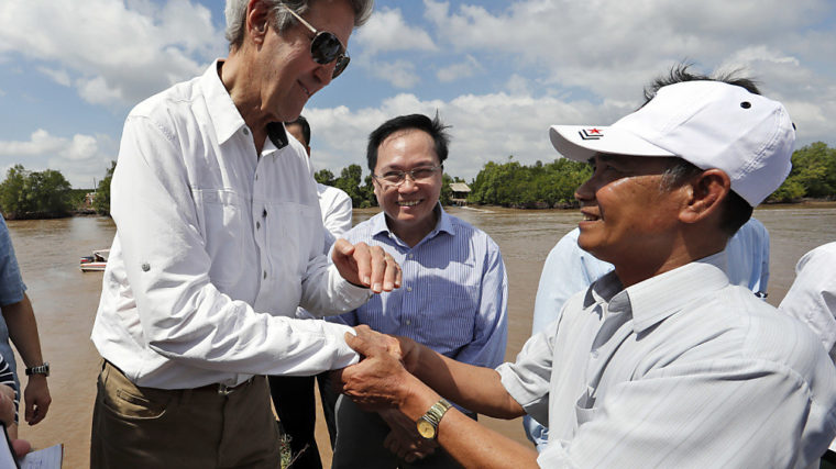 Ihre erste Begegnung vor fast 50 Jahren hatte blutig geendet, nun reichten sich John Kerry und Vo Ban Tam freundschaftlich die Hand. Bei einem Besuch im vietnamesischen Mekong-Delta traf Kerry, der inzwischen Aussenminister ist, am Samstag den Krabbenfischer Tam.