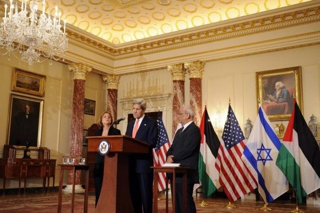 Zuvor hatten sich beide Seiten erstmals seit Herbst 2010 wieder direkt gegenüber gesessen. Auch US-Präsident Barack Obama und sein Vize Joe Biden trafen mit den Verhandlungsführern Israels und der Palästinenser zusammen. Mit dieser Geste demonstrativer Aufwertung wollte Obama offenbar deutlich machen, dass Kerry seine Vermittlungen mit voller Rückendeckung des Präsidenten unternimmt.