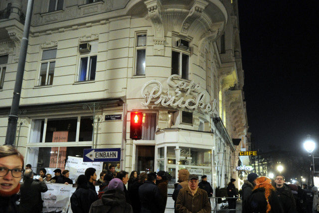 Auslöser der Proteste war ein Vorfall im Café Prückel vor knapp zwei Wochen. Zwei Frauen waren aus dem Kaffeehaus in der Wiener Innenstadt verwiesen worden, nachdem sie sich dort geküsst hatten. Sie gaben an, zudem von der Geschäftsführerin mit homophoben Aussagen beleidigt worden zu sein.