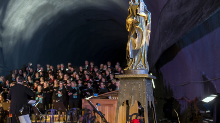 Eine Woche bevor die ersten Züge fahrplanmässig durch den Gotthard-Basistunnel rauschen, wurde das neue Konstrukt mal noch ganz anders genutzt: Chor, Orchester und Solisten gaben ein Konzert mit Werken, die eigens für die Schutzpatronin der Mineure komponiert wurden.