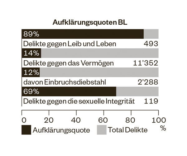 Ein Problem, das sich auch auf die Kriminalstatistik auswirkt: Mit weiter steigenden Deliktzahlen war das Baselbiet die grosse Ausnahme im vergangenen Jahr. Die übrige Schweiz ist 2013 sicherer geworden.