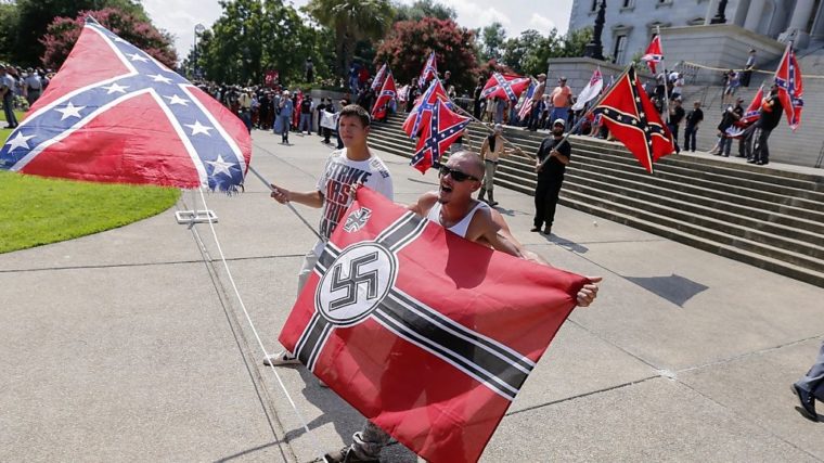 Anhänger der rassistischen und gewaltbereiten Organisationen wie der Ku-Klux-Klan haben im US-Bundesstaat South Carolina für die umstrittene Konföderiertenflagge demonstriert. Mehrere Dutzend Demonstranten zogen am Samstag zum Parlament in der Hauptstadt Columbia.