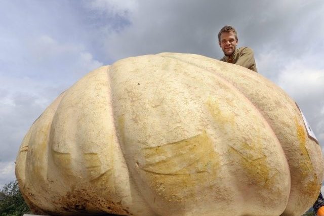 Züchter Beni Meier habe mit dem dicken Ding zum dritten Mal hintereinander seinen eigenen Europa- und Weltrekord gebrochen, teilten die Veranstalter in der deutschen Stadt Ludwigsburg am Sonntag mit. Die Deutsche Meisterschaft vor einer Woche hatte ein Kürbis aus Sachsen mit 699 Kilo gewonnen.