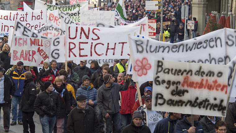 Wegen der düsteren Finanzlage will der Bundesrat für die Jahre 2018 bis 2021 insgesamt 13,041 Milliarden Franken für die Landwirtschaft zur Verfügung stellen – gut 750 Millionen weniger als bisher. Tausende Bauern hatten ihrem Ärger über diese Sparpläne an einer Demonstration im November Luft gemacht.