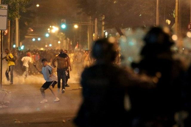 Doch plötzlich, gegen 19.30 Uhr, explodierten Tränengasgranaten, liefen die Demonstranten in Panik auseinander. Dann kam die berittene Polizei, Panzerfahrzeuge fuhren auf. Die Sondereinheiten der Polizei rückten in Keilformation vor. Ein einzelner Mann stellte sich der Truppe in den Weg und wurde weggestossen.