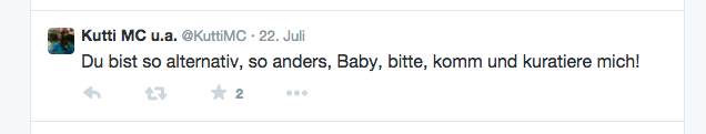 Jürg Halter alias Kutti MC schien da genau die richtige Wahl: Passavant hatte den umtriebigen Lyriker bereits mehrere Male in Zürich gesehen und war stets begeistert. Das Wunschkonzert ist gratis. Die Finanzierung übernimmt die Kultur-Abteilung des Kantons Basel-Stadt. Die Veranstaltung soll aber auch als Vorgeschmack auf den 19. Dezember dienen, wo der umtriebige Poet im 1.Stock in Münchenstein auftreten wird.