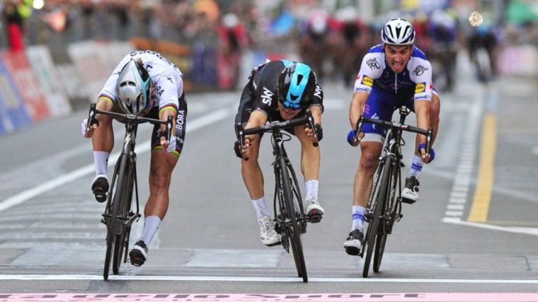 Sagan musste in der fünf Kilometer langen Abfahrt nach Sanremo die gesamte Führungsarbeit übernehmen, so dass ihm im Zielsprint die Kräfte ausgingen. Auf den letzten Metern zog der ehemalige Weltmeister Kwiatkowski am aktuellen Weltmeister vorbei. Der 26-Jährige wuchtete das Vorderrad nur um wenige Zentimeter vor jenem von Sagan über die Ziellinie.