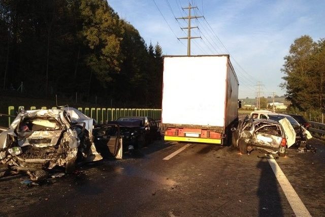 Acht Fahrzeuge waren in den Unfall verwickelt. Er ereignete sich kurz vor 16.30 Uhr. Der Sattelschlepper sei praktisch ungebremst in die stehende Autokolonne gefahren, teilte ein Sprecher der Zuger Strafverfolgungsbehörden mit. Der Lastwagen habe mehrere Autos „abgeschossen“.