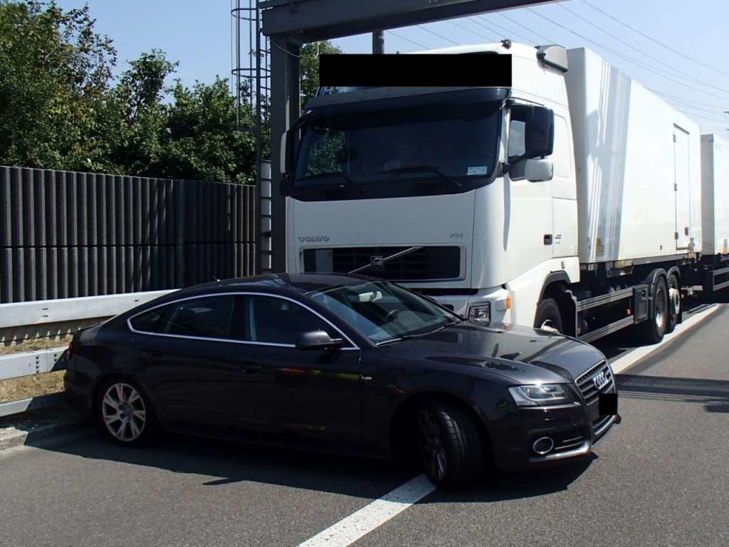 Ein Lastwagenchauffeur hat ein Auto auf der Autobahn A1 bei Rothrist AG rund 200 Meter vor sich her gestossen – ohne das gleich zu bemerken. Der 39-jähriger Chauffeur war beim Spurwechsel mit dem Auto kollidiert.
