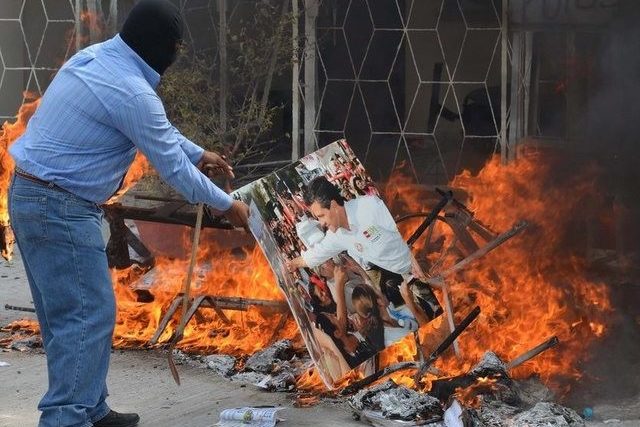 In der Stadt Chilpancingo attackierten die demonstrierenden Lehrer zunächst die regionalen Zentralen der Opposition. Im Fernsehen war zu sehen, wie vermummte Demonstranten die Fenster der Büros der konservativen Partei PAN, der linken Partei PRD und der sogenannten Bürgerbewegung einschlugen und die Wände besprühten.
