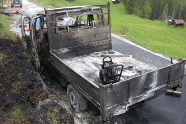 Daraufhin entzündeten sich die Benzindämpfe, worauf der Kanister umfiel und die Landefläche zu brennen begann. Das Feuer breitete sich sogleich auch auf die Fahrerkabine aus. Die Löschversuche mit einem Feuerlöscher gelangen nicht. Die Feuerwehr von Tschiertschen war vor Ort.