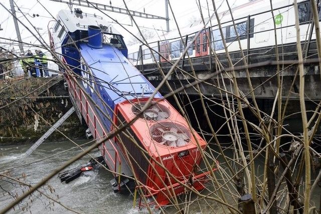 Die Rangierlokomotive des Typs Am843 entgleiste um 11.10 Uhr aus bisher unbekannten Gründen. Sie kam am Ende eines Stumpengleises innerhalb des Bahnhofareals nicht zum Stillstand und stürzte in den Bach. Die SBB bereitete die notwendigen Massnahmen zur Bergung der Lokomotive vor.
