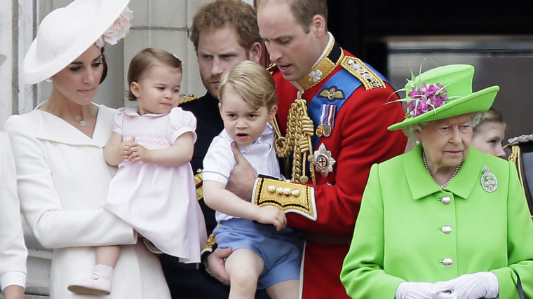 Neben ihr stand Bruder George, der ebenfalls in sommerlichen Farben gekleidet war. Vater William trug Gardeuniform, Kate einen schicken Hut. Auch Thronfolger Prinz Charles und Ehefrau Camilla, Prinz Harry und weitere Royals präsentierten sich den Untertanen.