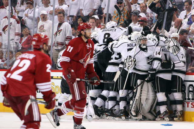 In Spiel 5 der Halbfinalserie gegen Phoenix fiel die Entscheidung in der Verlängerung, in der 78. Minute. Dustin Penner stellte mit seinem dritten Playoff-Treffer die Finalqualifikation sicher. Zuvor hatten die Kings zweimal einen Rückstand wettgemacht (0:1 und 1:2), im Schlussabschnitt bis drei Minuten vor Schluss 3:2 geführt, dann aber noch den Ausgleich durch Keith Yandle hinnehmen müssen.