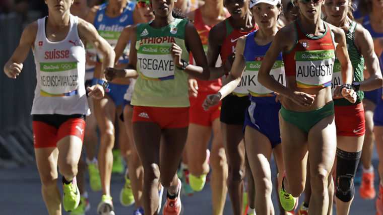 Sumgong verschärfte kurz vor der 40-km-Marke das Tempo, worauf zuerst Dibaba abreissen lassen musste, ehe auch Kirwa nicht mehr folgen konnte. Sumgong hatte in diesem Jahr bereits in London gewonnen, obwohl sie nach einem Kontakt mit einer Konkurrentin unsanft auf den Boden gefallen war.