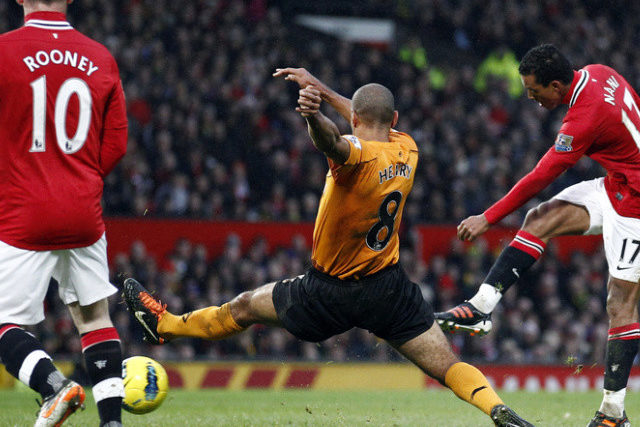Luis Nani (17./56.) und Wayne Rooney (27./62.) sorgten für den klaren Heimsieg der Mannschaft von Sir Alex Ferguson. Steven Fletcher (47.) erzielte das Ehrentor für die Wolves. In der Tabelle rückte ManU bis auf zwei Punkte an Leader Manchester City heran. Die Citizens spielen am Montag beim FC Chelsea.