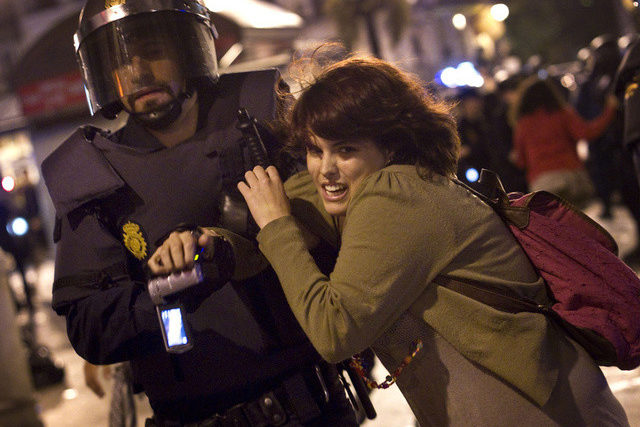 Die Sicherheitskräfte wollten mit der Aktion verhindern, dass die Demonstranten auf dem Platz wie vor einem Jahr eine Zeltstadt errichteten. Auch in Valencia, Cádiz und Palma de Mallorca löste die Polizei nächtliche Kundgebungen auf. In Barcelona dagegen schritt die Polizei nicht ein, als Demonstranten mehrere Zelte auf der Plaça de Catalunya aufbauten.