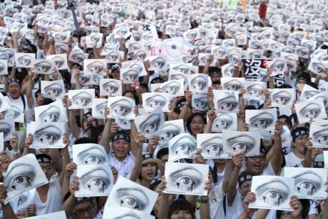 Die meisten waren in weiss gekleidet, der Farbe, die in Taiwans Kultur die Wahrheit symbolisiert. Sie sangen eine taiwanische Version des Revolutionslieds «Do you hear the people sing?» aus dem Musical «Les Misérables».