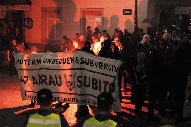 An der Kundgebung wurden mehr selbstverwaltete Freiräume und ein autonomes Zentrum Aarau gefordert.