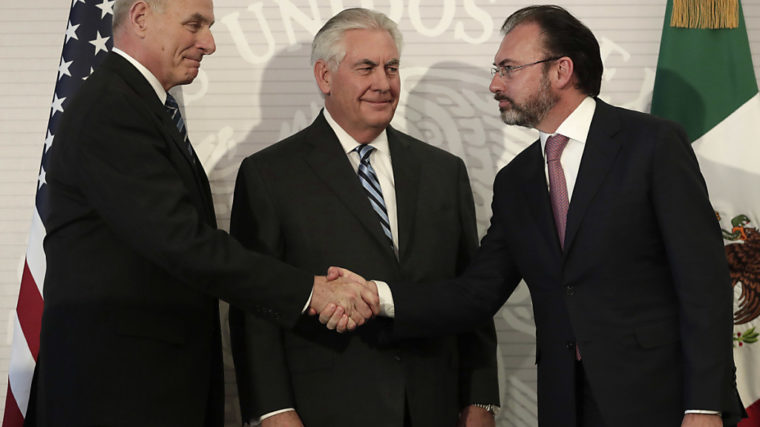 Tillerson und der US-Minister für Innere Sicherheit John Kelly hatten sich zuvor am Donnerstag in Mexiko-Stadt mit Videgaray, Innenminister Miguel Ángel Osorio Chong und Finanzminister José Antonio Meade getroffen. Für später war ein Treffen mit dem mexikanischen Präsidenten Enrique Peña Nieto geplant.