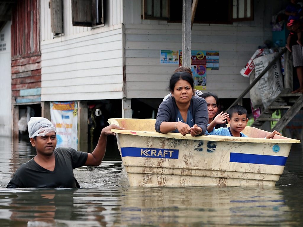 Die Regenzeit dauert in Thailand meist von Juni bis Oktober. Derart ergiebige Regenfälle im Januar sind eher ungewöhnlich. Am Freitag hatten die thailändischen Behörden die Flutwarnstufe auf drei erhöht, die zweithöchste Stufe.
