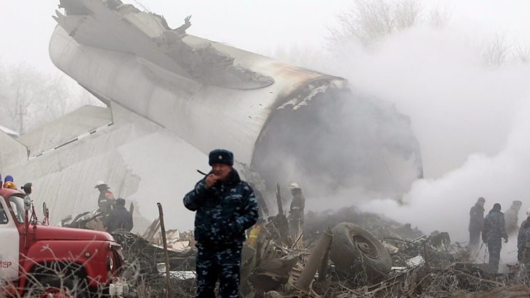 Beim Absturz eines türkischen Fracht-Jumbos in Kirgistan sind nach Behördenangaben mindestens 35 Menschen getötet worden. Die Boeing 747 krachte bei einem missglückten Anflug auf den Flughafen der Hauptstadt Bischkek in eine Wohnsiedlung und wurde völlig zerstört.