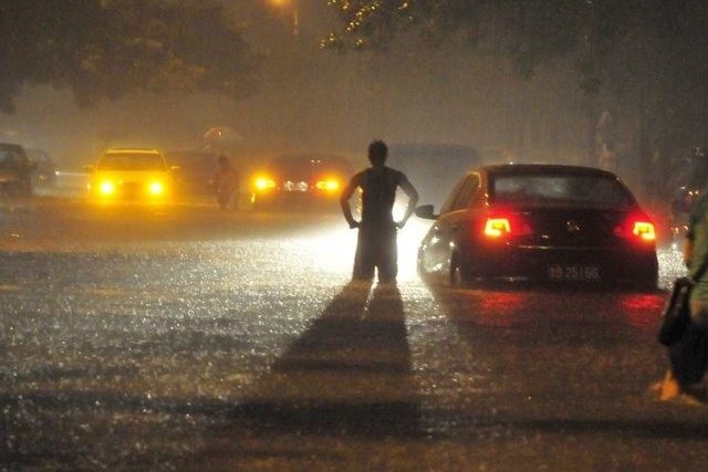 Tief liegende Strassen der chinesischen Hauptstadt wurden überflutet – in einigen Strassen stand das Wasser einen Meter hoch. Bäume wurden entwurzelt, Autos und Busse von Wassermassen eingeschlossen.