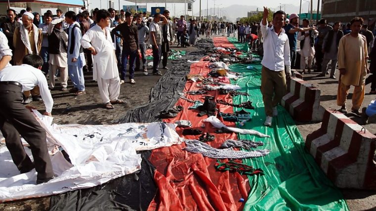 Tausende Angehörige der ethnischen Minderheit der Hasara hatten in der afghanischen Hauptstadt für den Bau einer Stromtrasse in der vernachlässigten Region Bamijan demonstriert, als inmitten der Menschenmenge mindestens ein Sprengsatz detonierte.