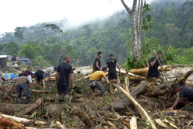 Die Überschwemmungen haben einen Grossteil der Kaffee-Plantagen schwer beschädigt. Die Rettungsmannschaften konnten den Ort nur zu Fuss erreichen, da die Zufahrtsstrasse mit Geröll blockiert war.